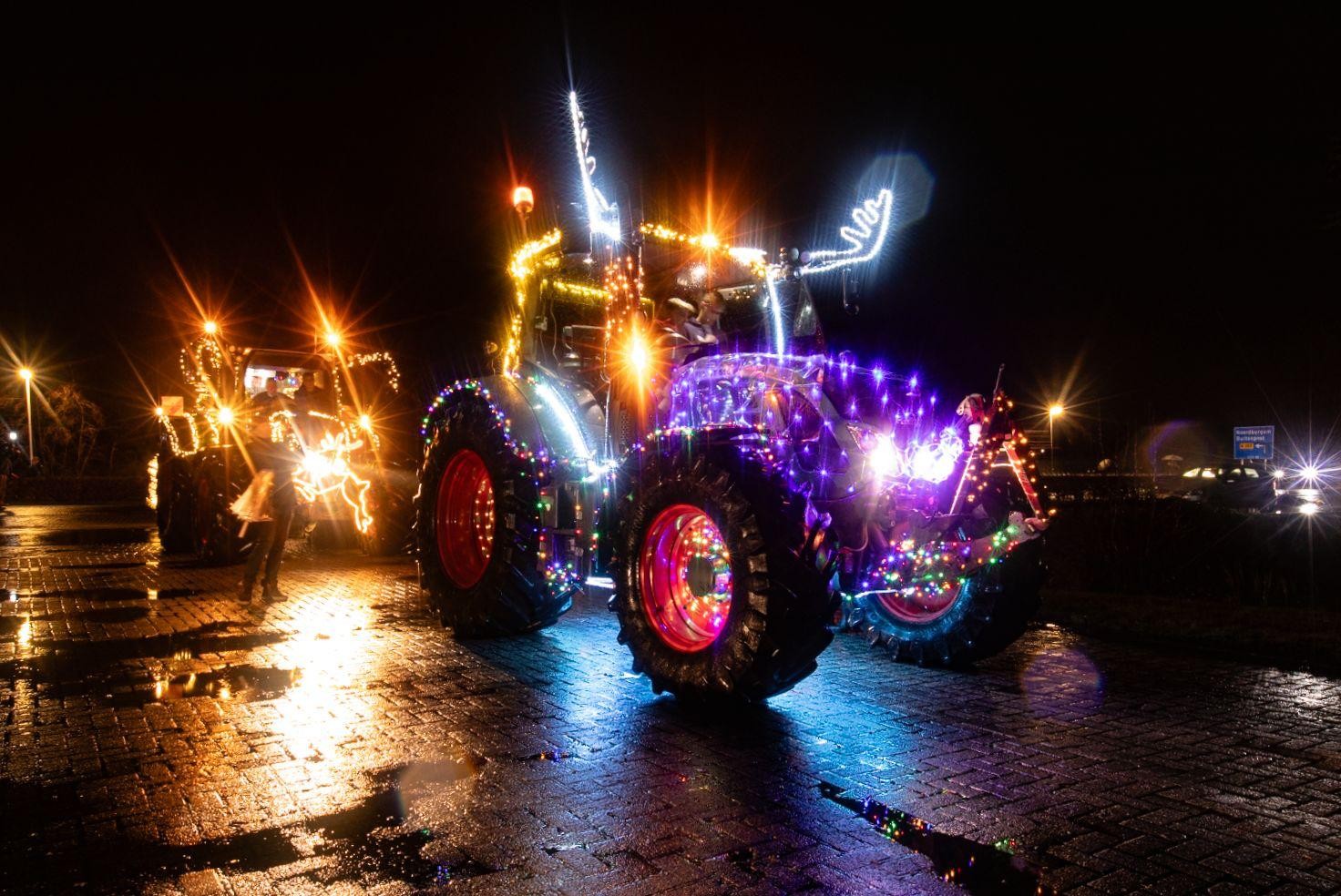 Een optocht met prachtig verlichte trekkers. We rijden een route door verschillende dorpen en langs meerdere verzorgingshuizen.