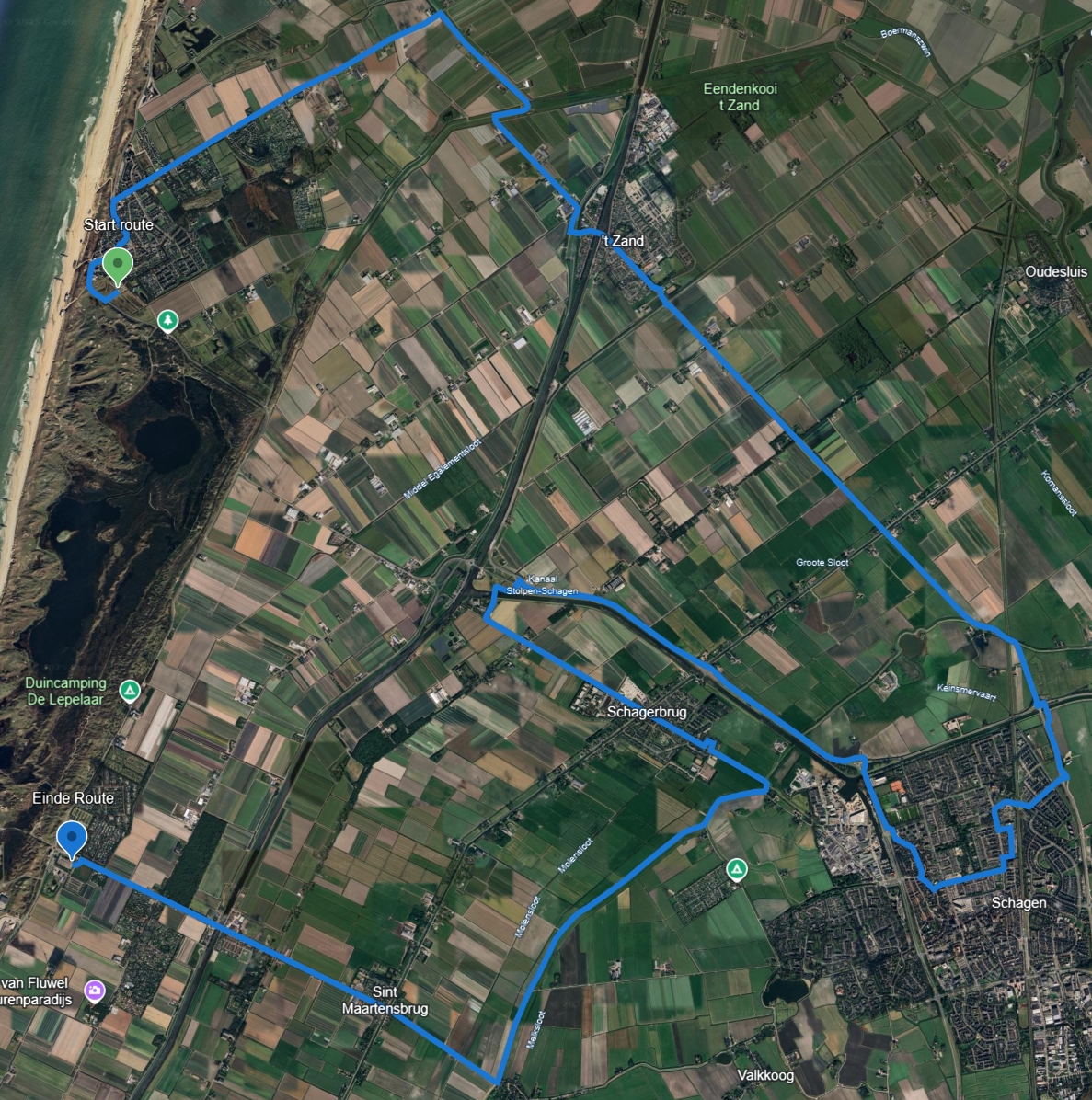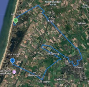 Om 19.00 uur start route parkeerplaats Zuid Schinkeldijk, Dorpsstraat, Callantsoog